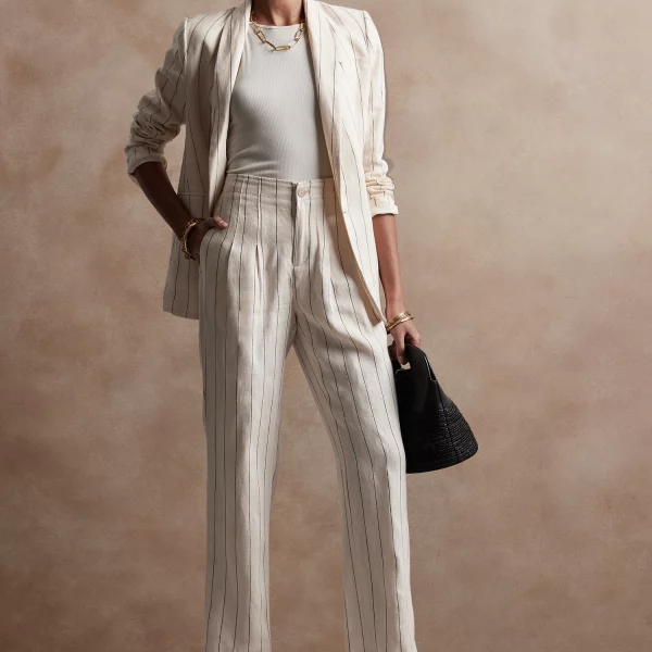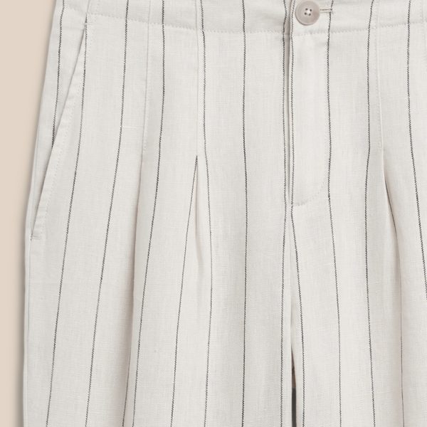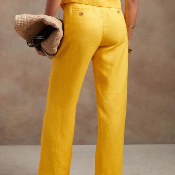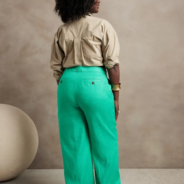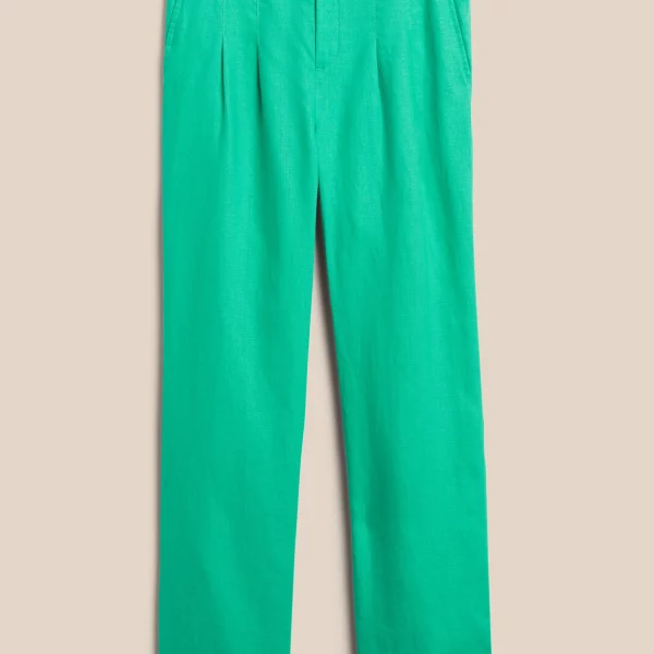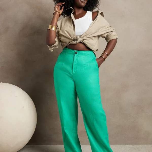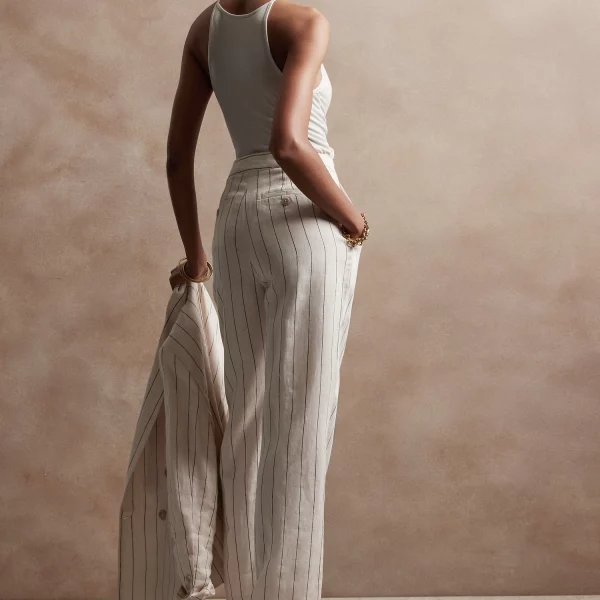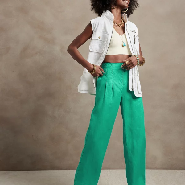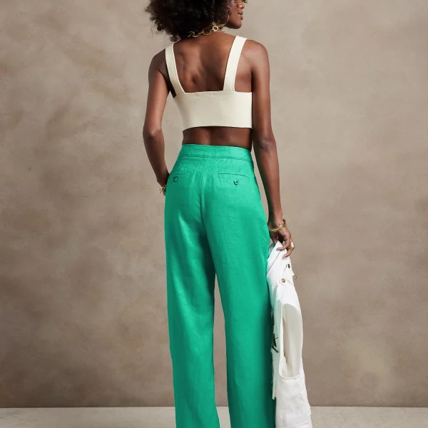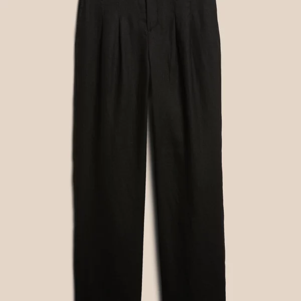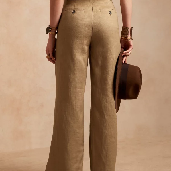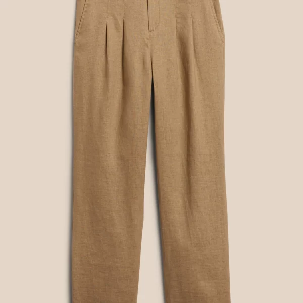 - Light and flowy, this high waisted pant is made from natural, breathable, luxurious linen that moves beautifully. Tailored pleating around the waistband adds elevated appeal.